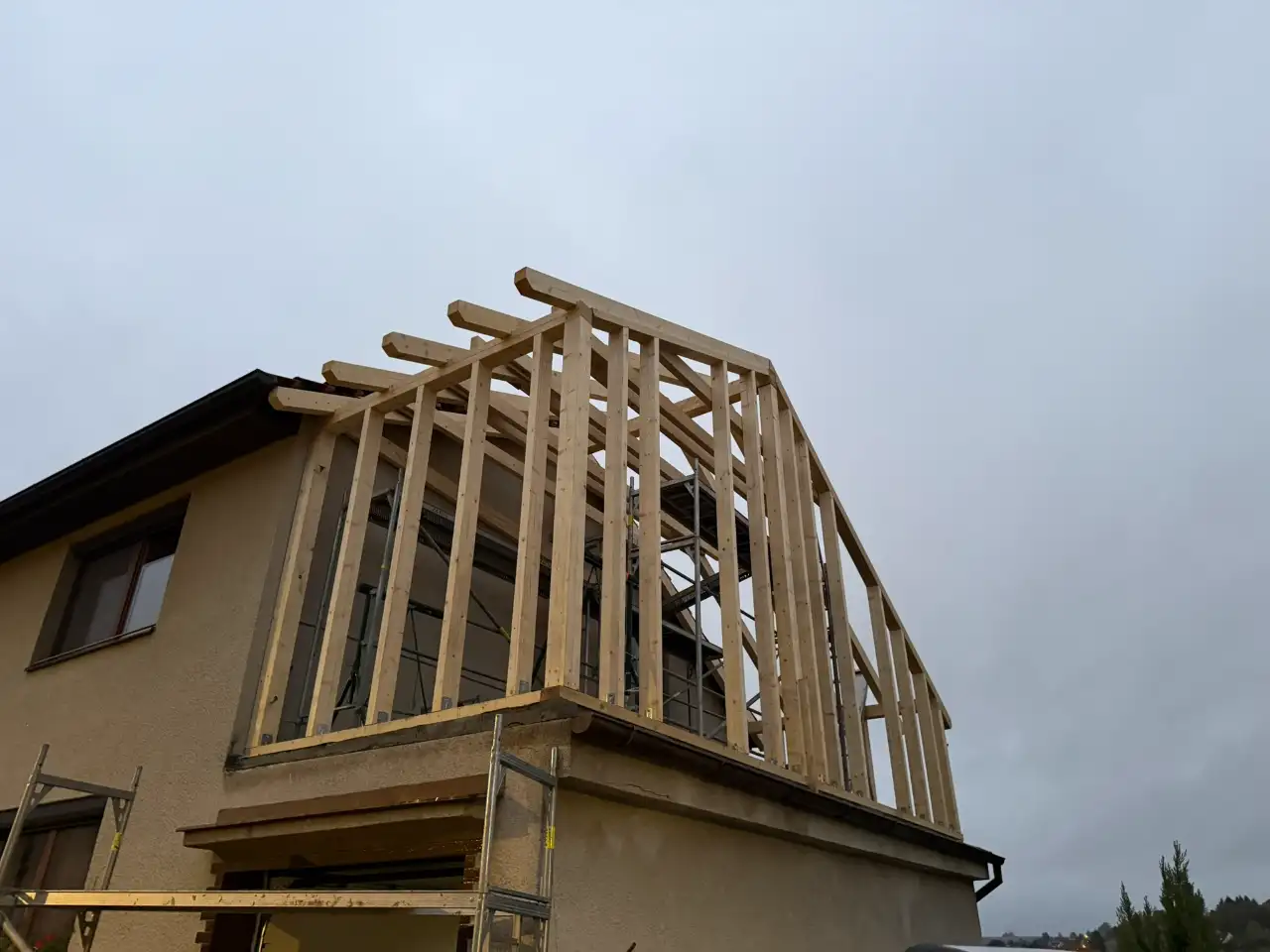 Komplexní stavební úprava rodinného domu, jejímž cílem bylo rozšíření obytné části o plnohodnotnou ložnici. Přístavba nahradila nevyužívaný balkon nad garáží. Celý proces zahrnoval rozsáhlé bourací práce, výstavbu nové dřevěné konstrukce, kompletní zateplovací systém, dokončovací interiérové práce i novou střešní konstrukci.