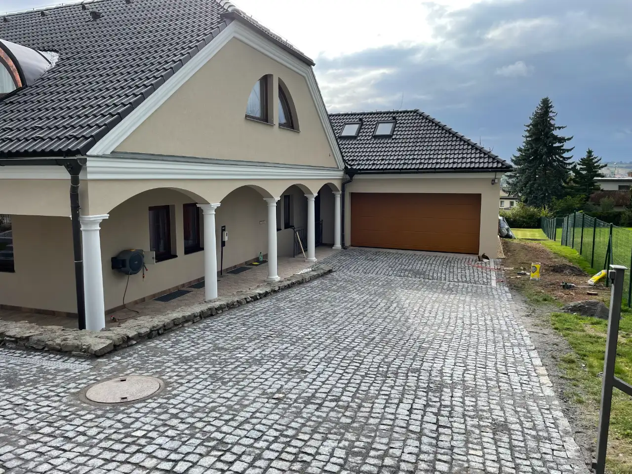 Modernizace výrazně omladila vzhled domu a zvýšila jeho funkční i užitnou hodnotu. Nová garáž poskytuje komfortní zázemí pro parkování, dřevoplastová terasa rozšířila obytný prostor směrem do zahrady a nová dlažba přinesla elegantní a trvanlivé řešení pro příjezdovou zónu. Renovovaná střecha a fasáda pak dodaly domu moderní, čistý a nadčasový vzhled.