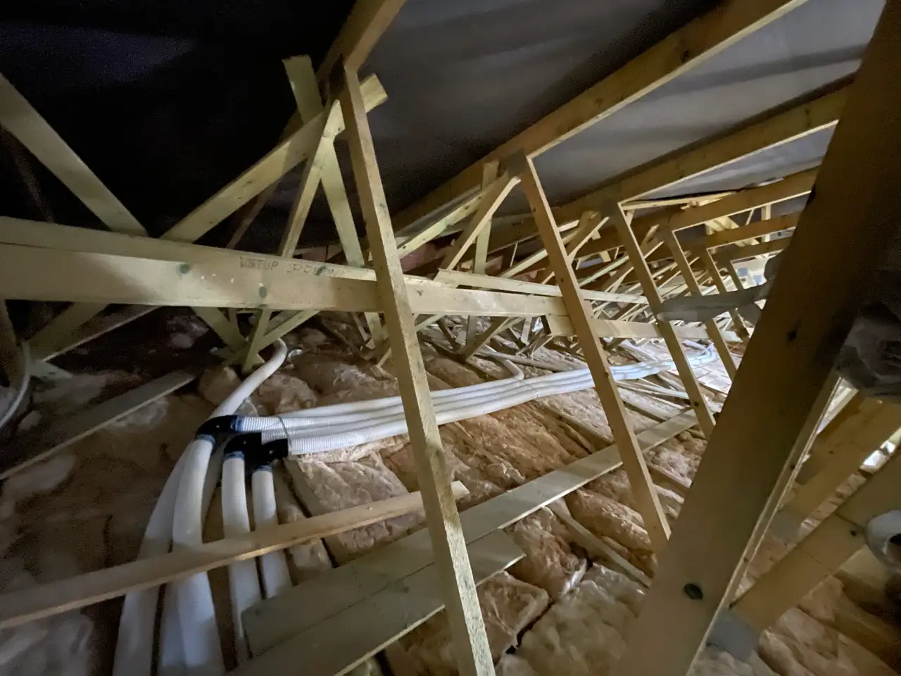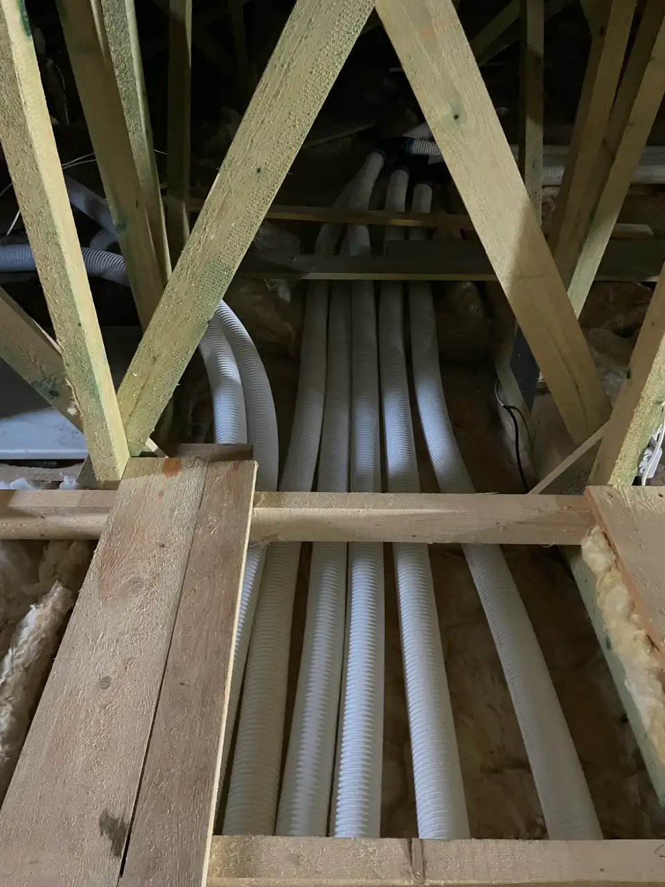 Rozvody vzduchu jsme vedli systémem ComfoTube, který byl integrován do konstrukcí domu tak, aby zůstal skrytý a nenarušoval interiér. Součástí instalace bylo osazení akustických tlumičů a rozdělovacích prvků, díky nimž je provoz systému tichý a rovnoměrný. Jednotlivé místnosti jsme zakončili designovými kryty vývodů TVA-P a talířovými ventily ComfoValve.