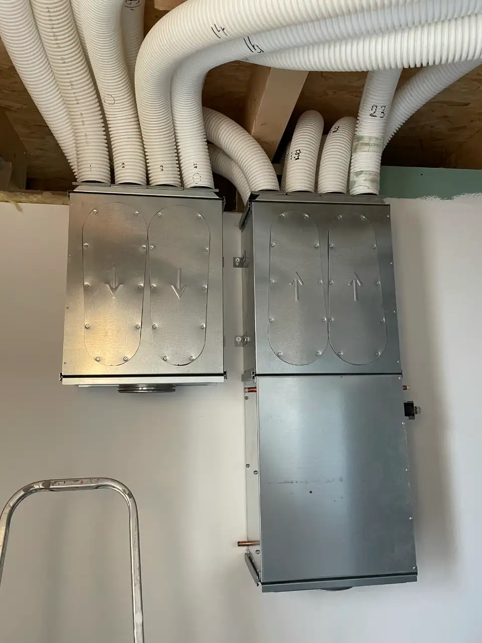 Po dokončení montáže jsme systém odzkoušeli, nastavili a provedli Blower Door test, který potvrdil vysokou těsnost a správné provedení celé konstrukce i VZT rozvodů. Celá dodávka proběhla kompletně v řešení Zehnder, se kterým naše firma jako autorizovaný partner dlouhodobě spolupracuje.